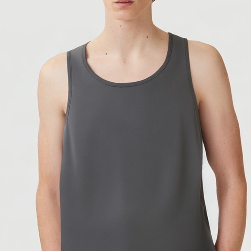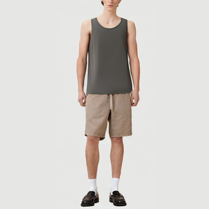 Designed for fitness and high-intensity workouts, this men’s tank top is crafted from a high-performance spandex and polyester blend that wicks moisture away from the body, keeping it dry and comfortable. The lightweight, breathable fabric maximizes ventilation during exercise, effectively preventing stuffiness. The solid color design features a simple, elegant crew neckline for a comfortable fit, and single-stitch details embody refined craftsmanship, creating a stylish and practical fit. It’s also anti-pilling and quick-drying, making it an ideal choice for active individuals who frequently exercise and wash.Care Instructions:We recommend machine washing in cold water on the gentle cycle, avoiding the use of bleach or chlorine-containing detergents.Turn the tank top inside out before washing to minimize surface wear and extend its life.Avoid high-temperature washing and drying to prevent shrinkage and warping.Dry in a cool, well-ventilated area, away from direct sunlight, which can cause fading and deterioration.Ironing should be done on a low setting, and it is recommended to iron on the inside out to protect the fabric structure.We recommend washing separately from similar colors to prevent staining and color shifts.