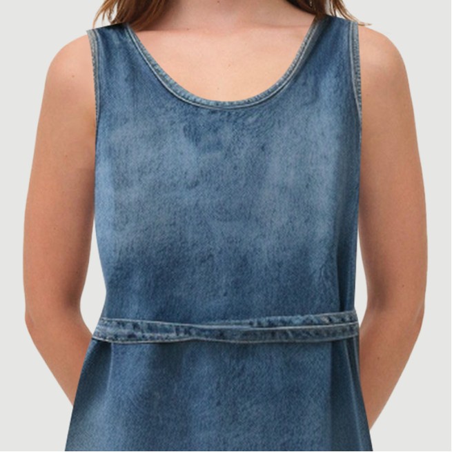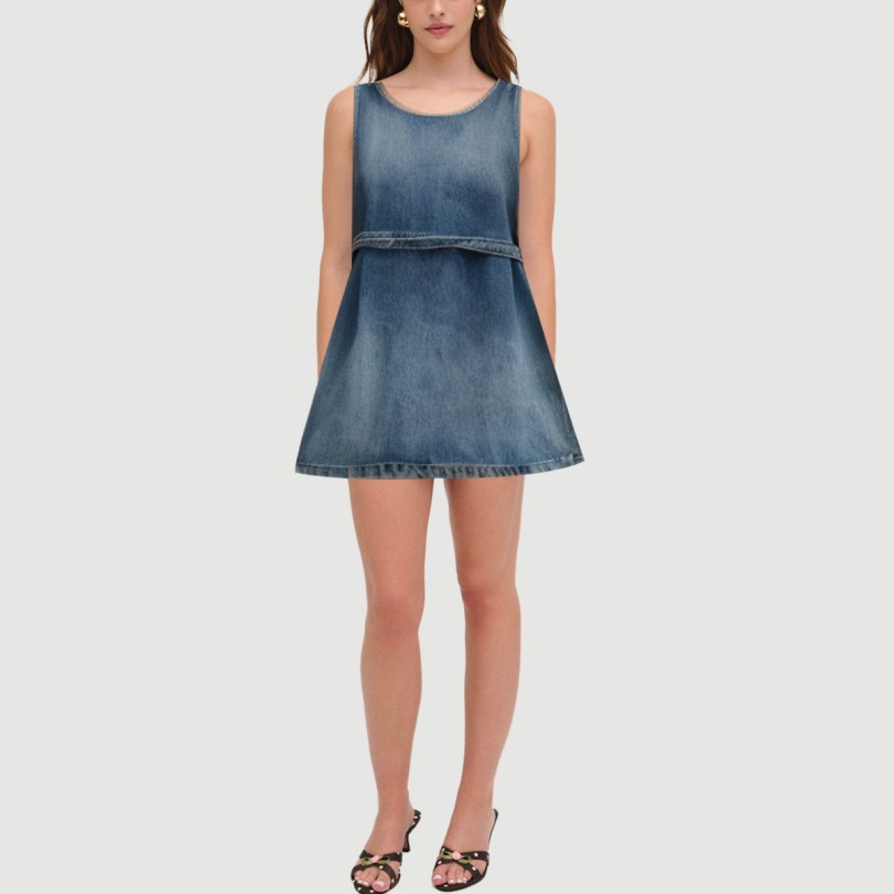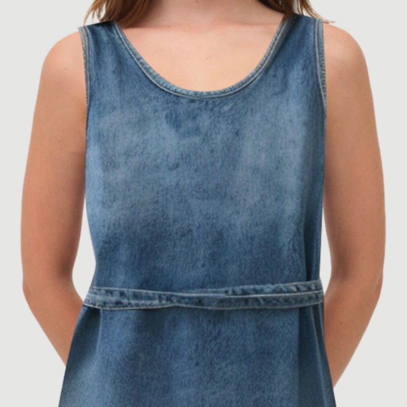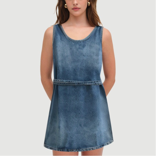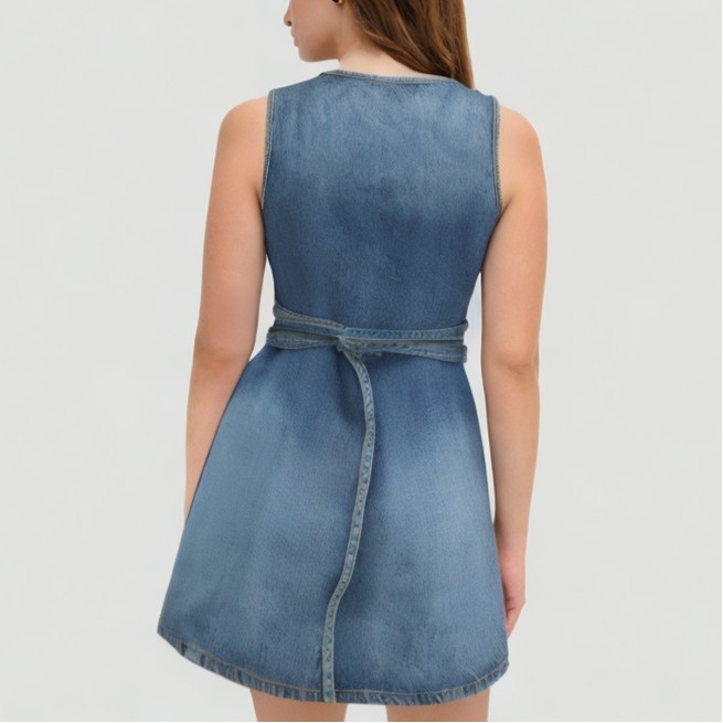 This dress features a classic denim blue colorway, blended with vintage styling for a chic and stylish look. The round neckline accentuates the neckline, while the sleeveless silhouette provides a fresh and breathable fit. A matching belt at the waist accentuates the waistline, shaping the figure and adding a sense of layering and design. The polyester and cotton blend provides both comfort and breathability, making it versatile and versatile.The solid color design is simple and versatile, perfect for everyday wear, dates, or retro-themed events, creating a stylish and personalized look. The overall design features meticulous attention to detail and comfort, making it a classic must-have in the modern woman’s wardrobe.Care Instructions:Hand wash in cold water with a mild, neutral detergent and avoid bleach. When machine washing, turn the skirt inside out, place in a laundry bag, and select the gentle cycle. Keep the water temperature below 30°C to prevent shrinkage and fabric damage. Gently squeeze out excess water and avoid wringing to protect the waistband and fabric structure. Hang to dry in a cool, well-ventilated area, away from direct sunlight, which can cause fading. Use a low heat setting when ironing to avoid damaging the fabric and waistband details. Wash separately from similarly colored items to prevent staining and color transfer.