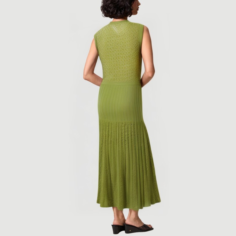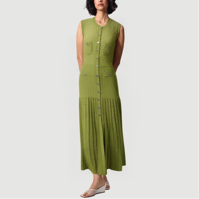 This women’s maxi dress exudes sensuality with its supremely elegant design. Featuring a classic sleeveless summer silhouette and a generous O-neckline, it emphasizes the neckline and shoulders. Single-breasted button detailing adds both style and functionality, allowing for easy adjustment for comfort. The extra-long length and flowing hem elongate the figure, creating a sophisticated yet sexy look perfect for a variety of spring and summer occasions.The dress is crafted from high-quality polyester with a knitted finish, resulting in a soft, stretchy fabric that offers excellent breathability, ensuring comfort in hot weather. The solid color design is simple and elegant, easily paired with accessories and shoes, making it suitable for work, evening, or a variety of formal and casual occasions.Care Instructions:Hand wash in cold water with a mild, neutral detergent and avoid bleach. Turn the skirt inside out when washing to protect the buttons and fabric details. Machine wash in a laundry bag, select the gentle cycle, and keep the water temperature no higher than 30°C. Gently squeeze out excess water and avoid wringing to preserve the shape of the skirt and buttons. Hang to dry in a cool, well-ventilated area, away from direct sunlight, which can cause fading and damage to the fabric. Use a low-temperature steam iron to avoid damaging the fabric and buttons. Wash separately from similarly colored items to prevent staining and color transfer.