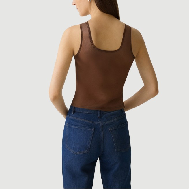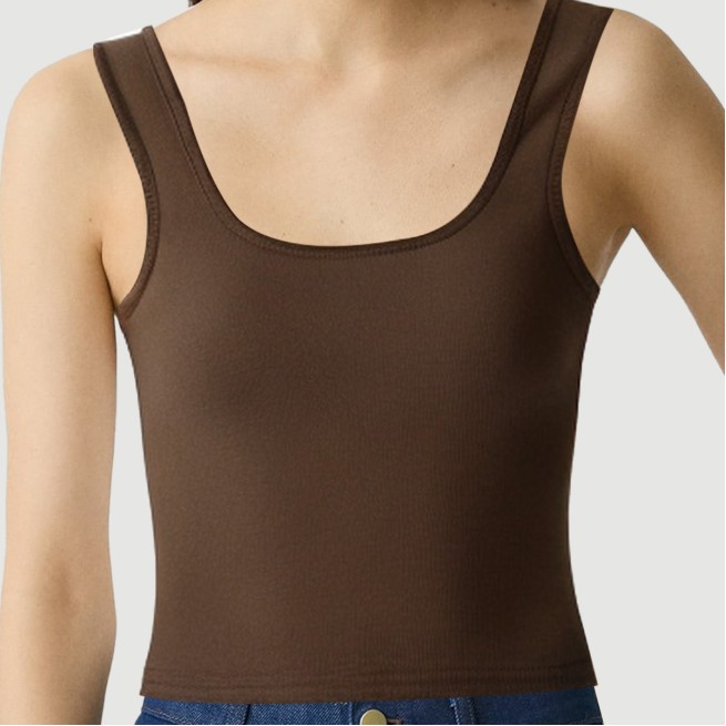 This vest blends classic retro style with modern minimalist styling, showcasing a unique and refined sense of style. Its clean, sleek design is perfect for women seeking everyday wearability and a unique sense of style. The vest features a visually appealing and structured square collar, creating a strong yet elegant silhouette that perfectly frames the neck and collarbone, adding a touch of three-dimensional sophistication.The ribbed fabric construction offers excellent stretch and fit, retaining its shape even when stretched, for a snug, comfortable fit. The ribbed texture creates a subtle, layered effect, and paired with the solid, unadorned design, the vest exudes a sophisticated elegance within its simplicity.The 180g fabric weight provides a moderately thick feel, making it comfortable to wear in spring and summer, or even in air-conditioned environments. It’s breathable yet maintains its shape. The digital printing process ensures the fabric retains its natural texture while delivering richer, longer-lasting colors, resisting fading and pilling, making it highly practical for everyday wear.This vest can be worn alone or as a base layer, easily teamed with a variety of bottoms, including jeans, skirts, and high-waisted wide-leg pants. It’s suitable for a variety of occasions, from daily commutes to casual shopping trips to weekend getaways, making it a must-have for any summer wardrobe.Care Instructions:Hand washing is recommended to preserve the fabric’s texture and the crisp, square-neck structure.If machine washing is required, always turn the vest inside out and place it in a laundry bag. Use the gentle cycle to prevent excessive agitation and loosening of the ribbed fabric.We recommend using a neutral detergent and avoid products containing bleach to prevent fading or fiber damage.After washing, air dry. Avoid prolonged exposure to direct sunlight, which can cause yellowing or discoloration. Avoid high-temperature tumble drying; hang or lay flat in a well-ventilated, cool place to dry.Iron on a low setting. If necessary, cover the garment with a cotton cloth to prevent direct contact and deformation.We recommend washing separately from like-colored items to prevent color transfer and affect overall color retention.