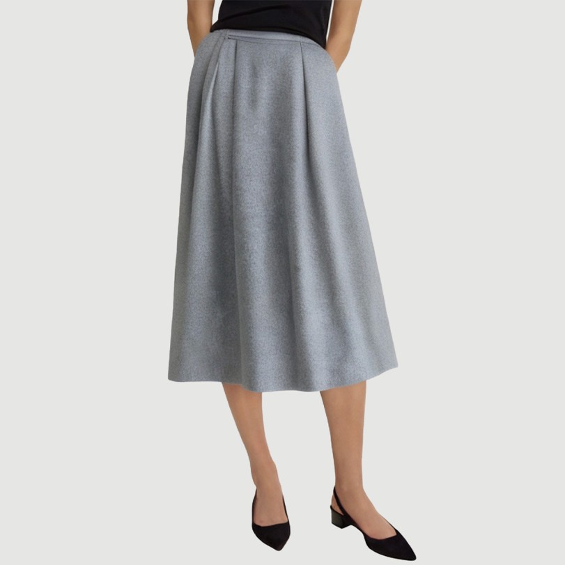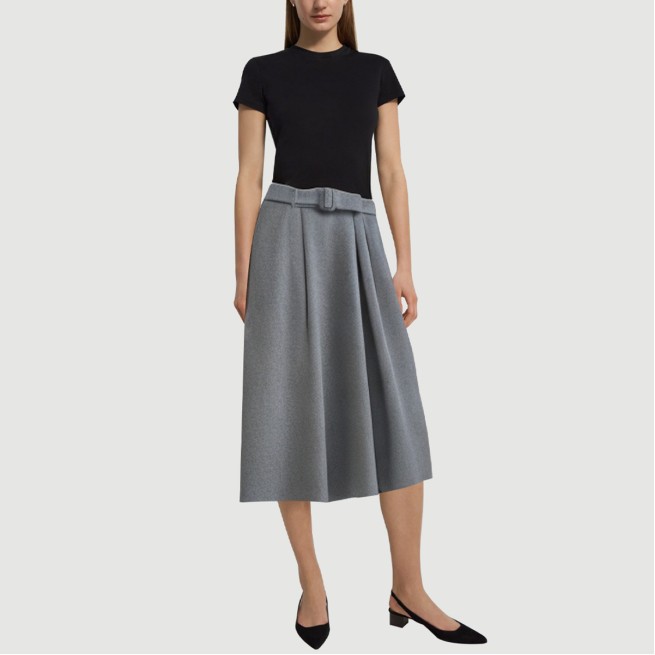 This women’s maxi skirt features a classic A-line design with a naturally loose hem that effortlessly frames the legs and enhances the elegant femininity of the wearer. A tonal belt at the waist enhances the overall silhouette and allows for flexible adjustment to create a perfect waistline. The delicate pleating adds layering and volume, adding a stylish and dynamic touch. The understated gray hue is versatile and suitable for a variety of casual and work settings, showcasing a simple yet stylish look.The fabric is made of 100% polyester and garment-dyed to ensure a rich, even color that lasts. The woven fabric is tightly constructed, soft, and stretchy, ensuring a comfortable, close-fitting fit while maintaining excellent breathability. The breathable fabric makes it particularly comfortable in spring and summer, helping to keep you cool and dry.This skirt pairs well with a simple top and shoes, or with a light jacket, sweater, or other items for a versatile and casual look. It is a must-have in the fashionable woman’s wardrobe. Care Instructions:Hand wash in cold water on a gentle cycle to preserve the fabric’s texture and pleated details.When machine washing, turn the skirt inside out and place it in a laundry bag on a gentle cycle to reduce wear and deformation.Avoid using detergents containing bleach to prevent color fading and fiber damage.Dry naturally in the shade after washing, away from direct sunlight to preserve the vibrant color and elasticity of the fabric.Do not tumble dry at high temperatures to prevent shrinkage and shape distortion, ensuring a comfortable fit.Ironing is recommended on a low heat with a gentle ironing method, avoiding direct ironing on the pleats to preserve the details and fabric.Wash separately from lighter or similarly colored items to minimize staining and wear, extending the life of the skirt.