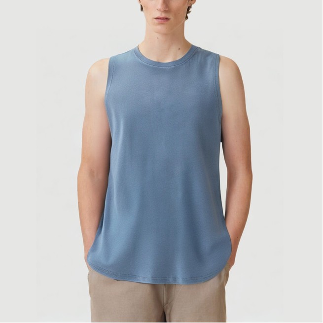 This men’s vest is crafted from a premium cotton and bamboo blend, combining the natural softness of cotton with the excellent breathability and moisture-wicking properties of bamboo, ensuring freshness and comfort for everyday wear. The high collar adds a stylish touch and provides added coverage, making it suitable for a variety of occasions, whether worn alone or as a base layer. The solid color scheme is simple and easy to pair with a variety of outerwear, shirts, and bottoms for a smart, everyday look. The sleeveless cut frees up shoulder and arm space, making it ideal for spring and summer, as well as air-conditioned environments, perfectly balancing practicality and aesthetics.Care Instructions:Hand wash or machine wash on the gentle cycle, no higher than 30°C, to preserve the fabric’s softness and elasticity.Use a neutral detergent and avoid bleach and chlorine-containing detergents to prevent damage to the fabric.Turn the vest inside out before washing to reduce surface friction and protect the collar and seam details.Gently squeeze out the moisture after washing; avoid wringing it out to prevent deformation. Hang in a cool, well-ventilated area to air dry. Avoid direct sunlight, which can cause fading and fiber degradation.If ironing is necessary, use a low heat setting and apply gentle pressure to the inside of the vest, avoiding ironing directly on the collar.Wash separately from lighter or similarly colored items to prevent cross-dyeing.