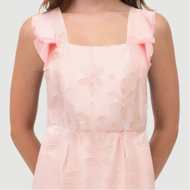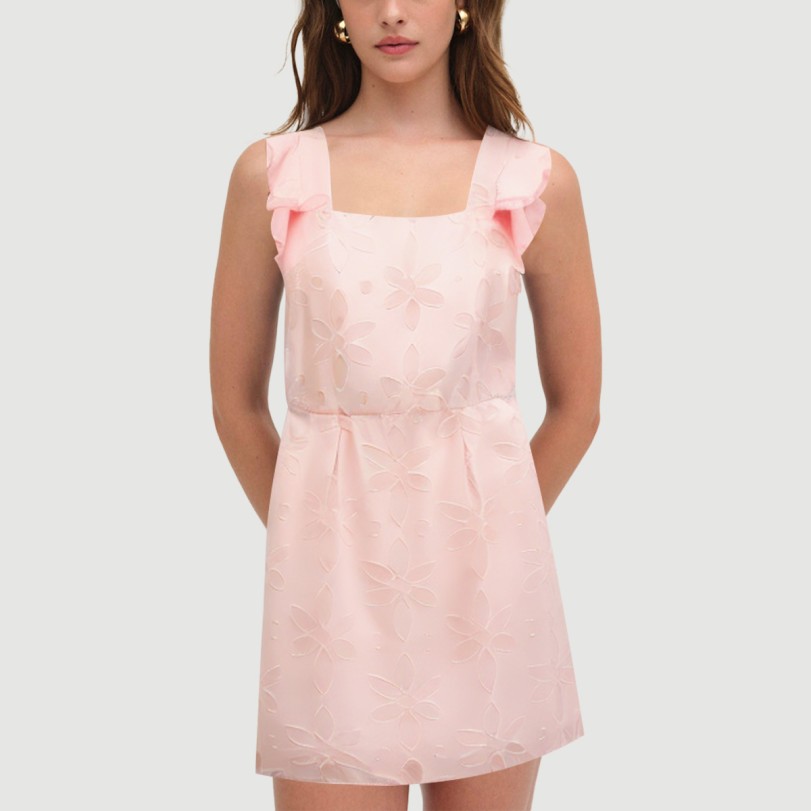 This dress features a soft pink base and a delicate floral print, exuding a fresh, sweet, and feminine charm. The spaghetti-strap, collarless design elegantly accentuates the shoulders and neck, providing a lightweight and breathable feel perfect for hot summer weather. The all-polyester fabric, woven with a woven process, is delicate, soft, breathable, and durable, ensuring a comfortable and long-lasting fit.The mini-length design accentuates the legs, making it perfect for a variety of casual everyday occasions, from street strolls to gatherings with friends to vacations. The overall style strikes a balance between practicality and fashion, effortlessly creating a youthful and vibrant summer look.Care Instructions:Hand wash in cold water with a mild neutral detergent and avoid bleach. When machine washing, turn the dress inside out, place in a laundry bag, and select the gentle cycle. Keep the water temperature below 30°C to prevent shrinkage and fabric damage. Gently squeeze out excess water and avoid wringing to protect the fabric and print. Hang to dry in a cool, well-ventilated area, away from direct sunlight, which can cause fading. Iron on a low heat setting to avoid heat damage. Wash separately from similarly colored items to prevent staining and color transfer.