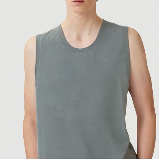 This men’s vest is made from 100% cotton and acid-washed for a unique vintage feel and natural color. The lightweight and breathable fabric effectively wicks away perspiration, keeping you dry and comfortable, making it ideal for high-intensity workouts and sports. The 220g fabric weight ensures durability and excellent support, while also resisting pilling for a longer lifespan. The classic crew neck design is simple and stylish, fitting snugly around the neck for a masculine look. The solid color design easily matches with a variety of athletic gear, offering both practicality and aesthetics.Care Instructions:We recommend machine washing in cold water on the gentle cycle. Avoid using bleach or chlorine-containing detergents. Turn the vest inside out before washing to reduce friction on the surface of the fabric and preserve the acid wash effect and fabric structure. Avoid high-temperature washing and drying to prevent shrinkage and warping, and to preserve the garment’s shape. Dry in a cool, well-ventilated area, away from direct sunlight, which can cause fading and fabric degradation. Use low temperatures when ironing, and it’s best to work on the inside out to prevent damage. We recommend washing the vest separately or with similar colors to prevent staining and color shifts.