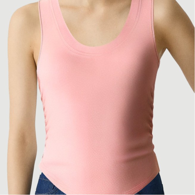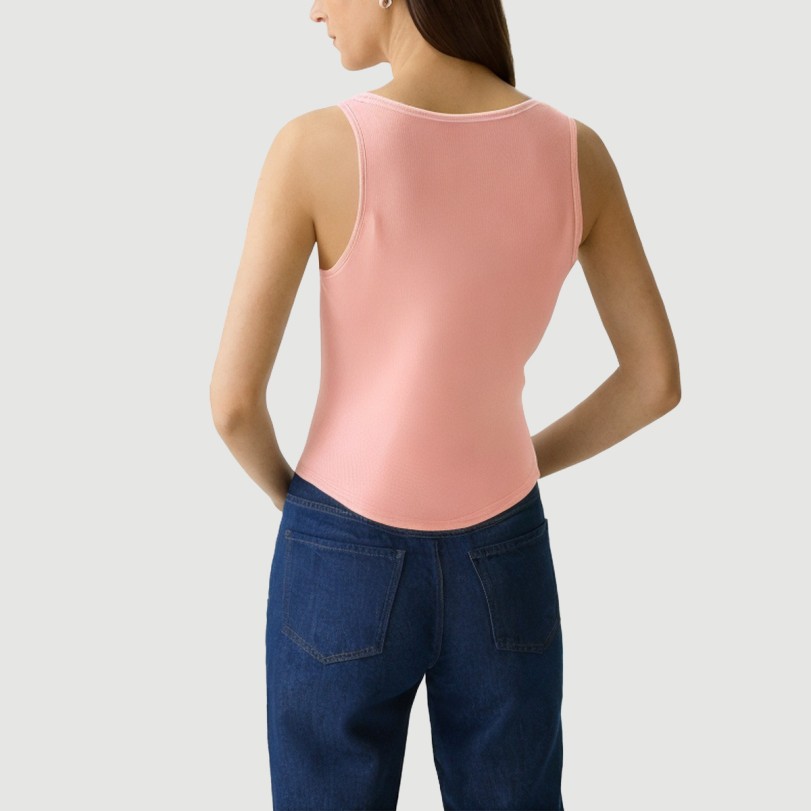 This tank top blends retro and modern design elements, featuring a simple round neckline and a fitted silhouette that perfectly frames the female figu…