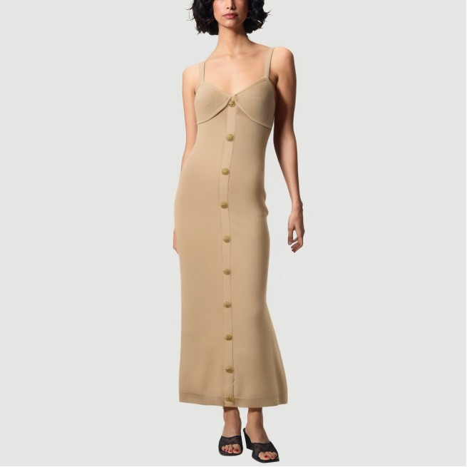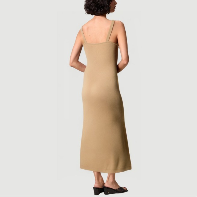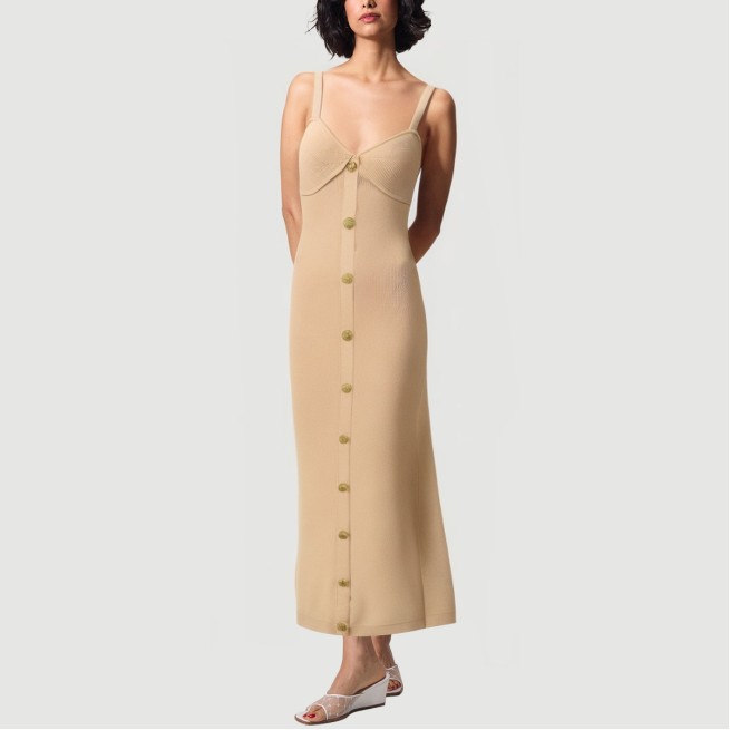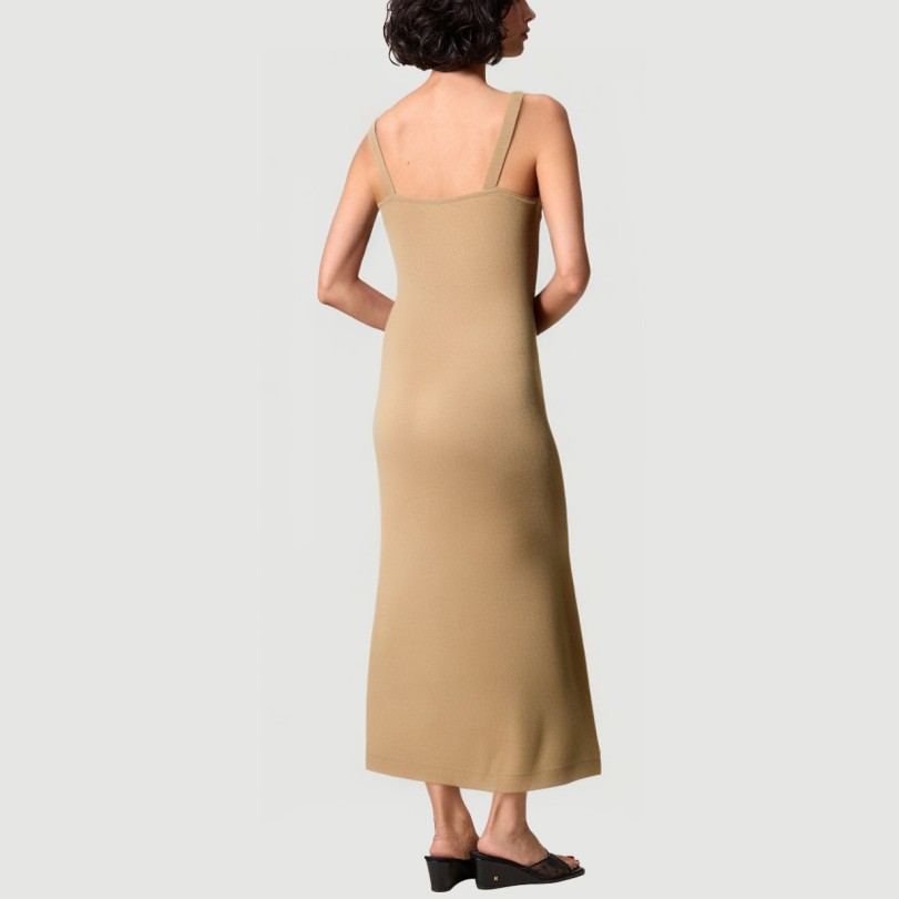 This long skirt suit, crafted in a simple, solid color palette, accentuates a woman’s elegance and sensuality. The classic V-neck silhouette flatters the neckline and collarbone, while the dimensional cut and slim fit perfectly hug the body, creating a flattering silhouette. The midi length creates a relaxed yet modern look, perfect for spring and summer, offering both comfort and style.The fabric is a nylon and viscose blend, and the knitting process ensures excellent stretch and breathability, making it lightweight and comfortable. With no added embellishments, the simple yet elegant design is suitable for a variety of occasions, from everyday wear to work and gatherings, effortlessly showcasing a woman’s confident charm.Care Instructions:Hand wash in cold water with a mild, neutral detergent and avoid bleach. Turn the suit inside out before washing to preserve the fabric’s texture. Machine wash in a laundry bag, using the gentle cycle and a temperature not exceeding 30°C. Gently squeeze out excess water and avoid wringing to prevent deformation. Hang to dry in a cool, well-ventilated area, away from direct sunlight, which can cause fading and fabric aging. Use a low-temperature steam iron to avoid damage from high temperatures. Wash separately from similarly colored items to prevent staining and color transfer.