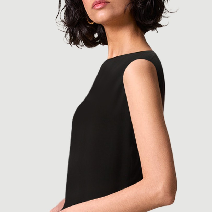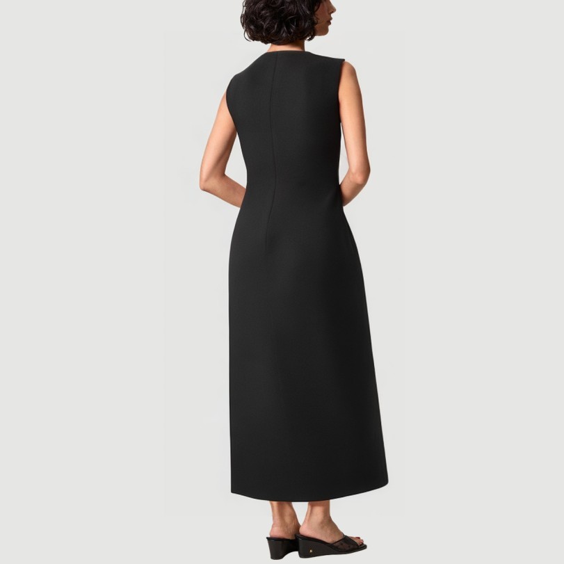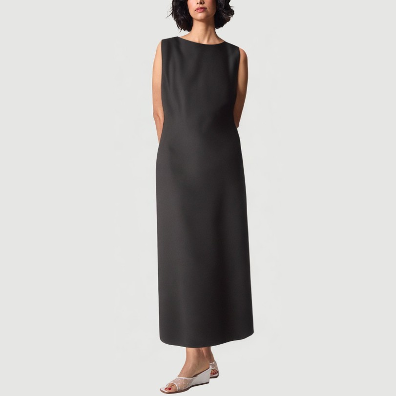 This women’s dress blends retro and modern elements, featuring a classic crew neckline that accentuates the neck and shoulders. The sleeveless silhouette enhances summer freshness while showcasing elegant arm contours. The slit waist, cleverly integrated into the slim fit, enhances the look while adding a dynamic and agile touch. The overall silhouette hugs the body, showcasing elegance and confidence, making it suitable for a variety of casual and formal occasions.The fabric is woven from 100% polyester, offering a lightweight, breathable, and eco-friendly feel. The material is durable, easy to care for, and machine washable for everyday convenience. The overall design combines practicality with aesthetics, meeting the modern woman’s dual needs for style and comfort.Care Instructions:We recommend machine washing in cold water, using the gentle cycle. Avoid using bleach and harsh detergents. Turn the dress inside out before washing to protect the waist seam detail and fabric structure. Avoid high-temperature washing and ironing to prevent deformation and damage. Hang in a cool, well-ventilated area to dry, away from direct sunlight that may cause fading. Use a low-temperature steam iron and place a sheet underneath to protect the fabric. We recommend washing separately from similarly colored items to prevent staining and color transfer.