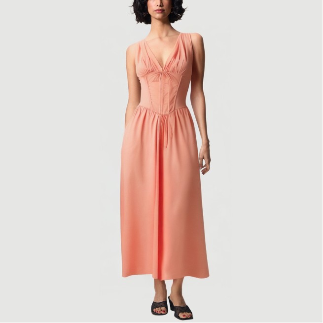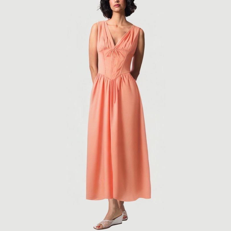 This women’s dress blends simplicity with fashion, featuring a classic solid color scheme for a fresh, casual look. The elegant V-neckline accentuates the neckline, while the front tie detail adds movement and allows for custom fit. The sleeveless silhouette is perfect for summer wear, providing a fresh and comfortable fit. The pleated skirt creates a light, flowing look and a flexible, flexible feel. The loose yet flattering fit makes it perfect for everyday wear, outdoor activities, and summer gatherings.The fabric is woven from 100% cotton, offering excellent breathability and moisture absorption, making it soft and comfortable for extended summer wear. Natural cotton is eco-friendly and suitable for all skin types, while also being durable and easy to clean and care for.Care Instructions:We recommend machine washing in cold water, using the gentle cycle. Avoid using bleach or harsh detergents. Turn the dress inside out before washing to protect the laces and pleats. Avoid high-temperature washing and ironing to prevent deformation and damage to the fabric fibers. Hang in a cool, well-ventilated area to dry, away from direct sunlight, which can cause fading. We recommend using a low-temperature steam iron. If necessary, place a sheet underneath the dress to protect the fabric. Wash separately from similarly colored items to prevent staining and color transfer.