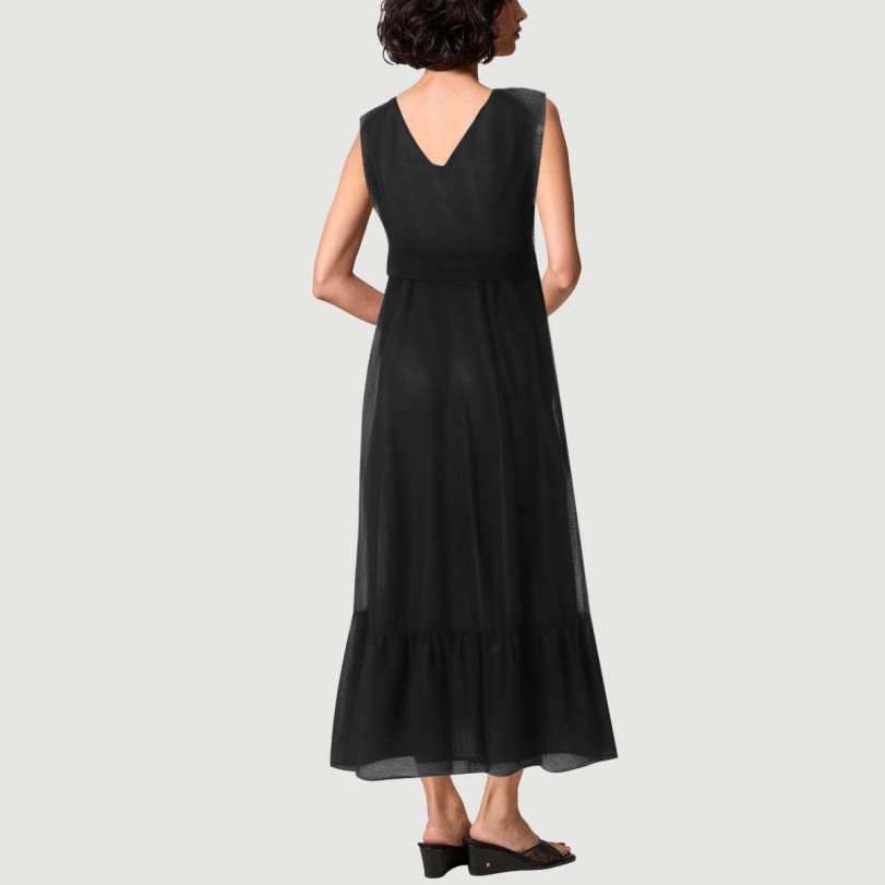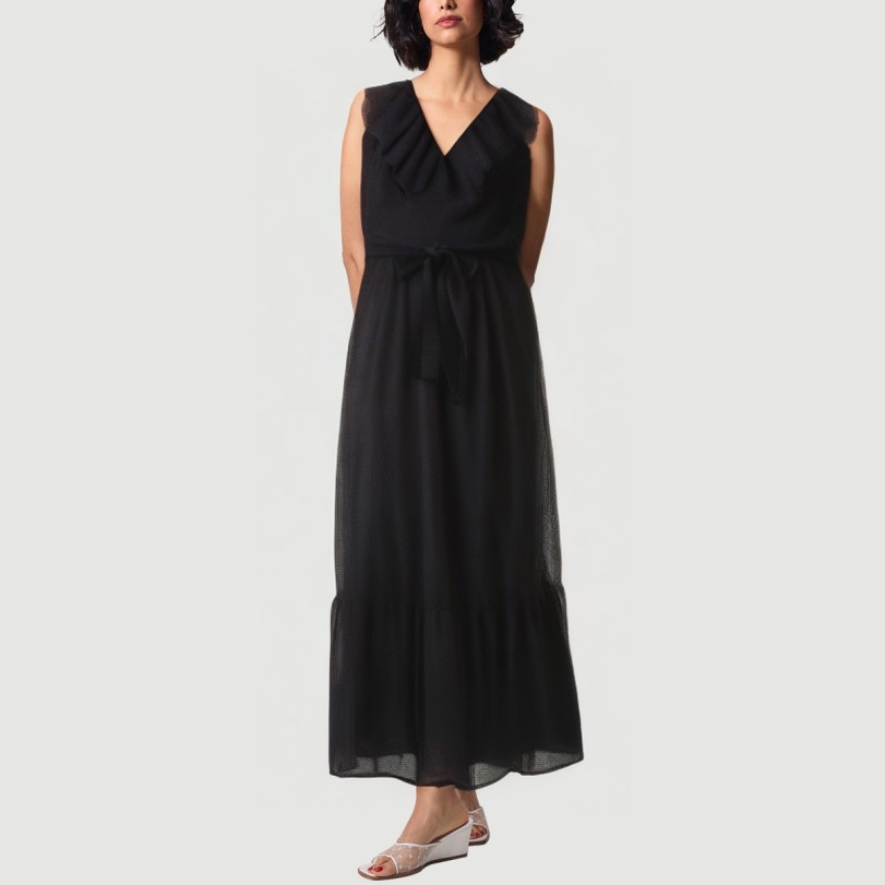 Designed with simplicity and style in mind, this maxi dress features a classic V-neck design that accentuates the graceful neckline. The sleeveless design makes it perfect for summer wear, offering a refreshing and breathable feel. The unique ruffled hem at the front adds layered and dimensional detail, enhancing the overall stylish feel. The loose, comfortable fit strikes a balance between casual and elegant, perfect for everyday outings, casual gatherings, or summer dates, showcasing a woman’s natural charm and stylish style.The fabric is made of a 100% polyester woven material with a fine texture and excellent breathability, effectively wicking away moisture to keep the body dry and comfortable. The durable fabric is easy to clean and maintain, perfect for women with a fast-paced lifestyle.Care Instructions:We recommend machine washing in cold water, using the gentle cycle. Avoid using bleach or harsh detergents. Turn the garment inside out before washing to protect the hem details and fabric structure. Avoid high-temperature washing and ironing to prevent deformation and color fading. When drying, hang in a cool, well-ventilated area away from direct sunlight, which can cause fading and fabric degradation. When ironing, we recommend using a low-temperature steam iron. You can iron with a cloth underneath to protect the fabric. We recommend washing separately from similarly colored items to prevent staining and color transfer.