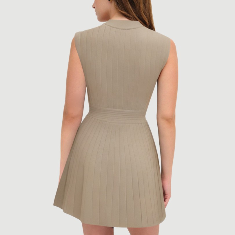 V-neck single-breasted slim-fit knit dress