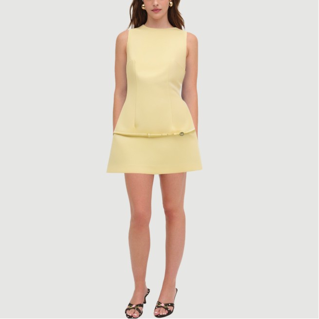 This summer mini dress, featuring a vibrant yellow hue, exudes a vibrant and youthful vibe. Its classic crew neckline creates clean, elegant lines and cleverly contours the neck. The sleeveless design provides a refreshing and breathable feel, perfect for hot summer days. A matching waistband accentuates the waistline, shaping the figure and adding a sense of layered style and style.The dress is crafted from 100% polyester, meticulously woven to create a lightweight, breathable, and durable fabric, ensuring a comfortable and long-lasting wear experience. The long length accentuates the leg, creating a stylish and casual look perfect for everyday occasions, from shopping to casual gatherings to summer getaways.This versatile piece perfectly balances practicality and aesthetics, making it a must-have for the modern woman’s summer wardrobe, effortlessly creating a fresh and fashionable urban look.Care Instructions:Hand wash in cold water with a mild neutral detergent and avoid bleach. When machine washing, turn the garment inside out, place in a laundry bag, and select the gentle cycle. Keep the water temperature below 30°C to prevent shrinkage and fabric damage. Gently squeeze out excess water and avoid wringing to protect the belt and fabric structure. Hang to dry in a cool, well-ventilated area, away from direct sunlight, which can cause fading. Use a low heat setting when ironing to avoid damaging the fabric and belt details. Wash separately from similarly colored items to prevent staining and color transfer.